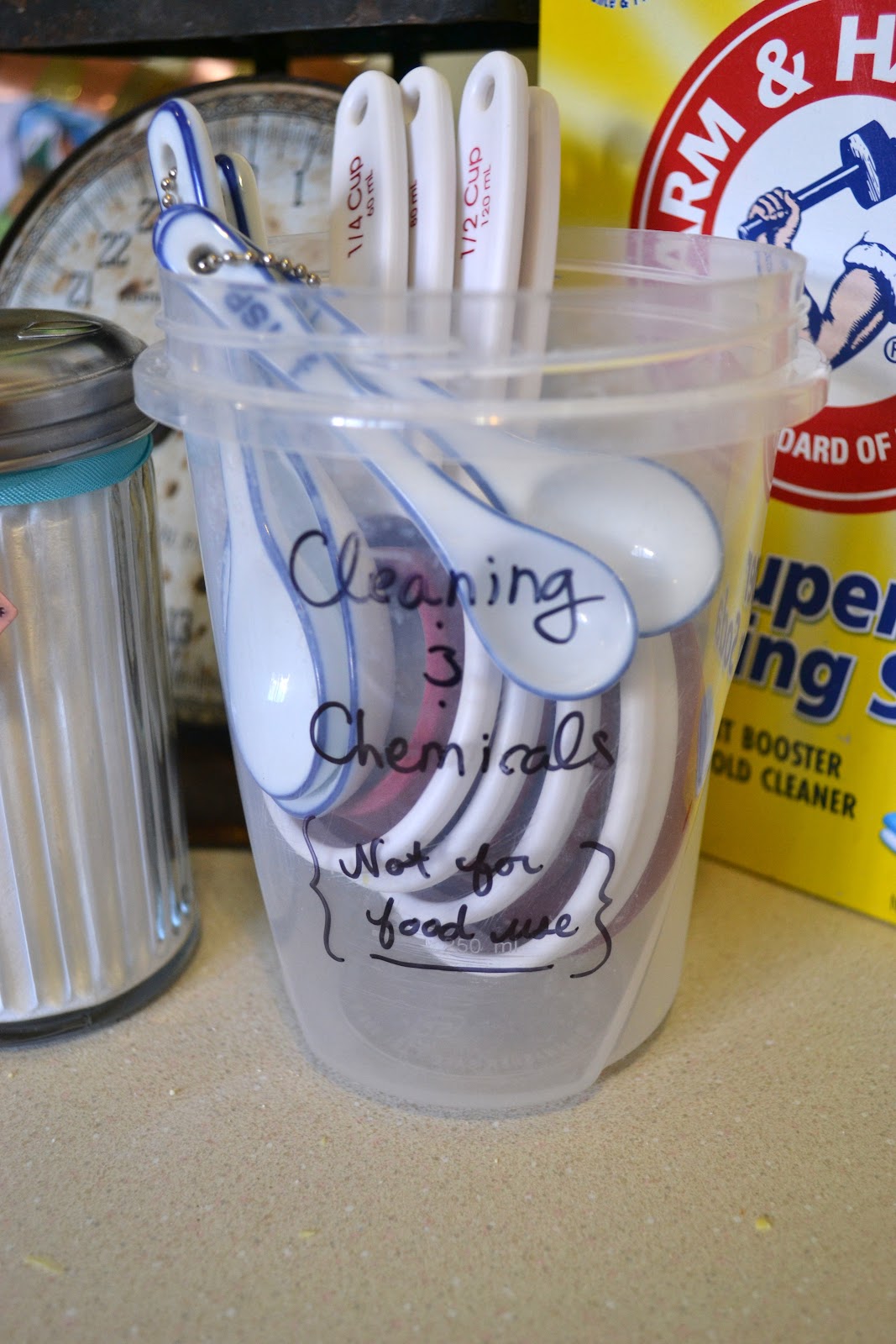 For the dishwasher detergent, I used this recipe from Homestead Revival {an awesome blog, if you haven't already been there}. She has a recipe for the laundry detergent here, also. I also stole her idea for using a sugar dispenser for my detergents...